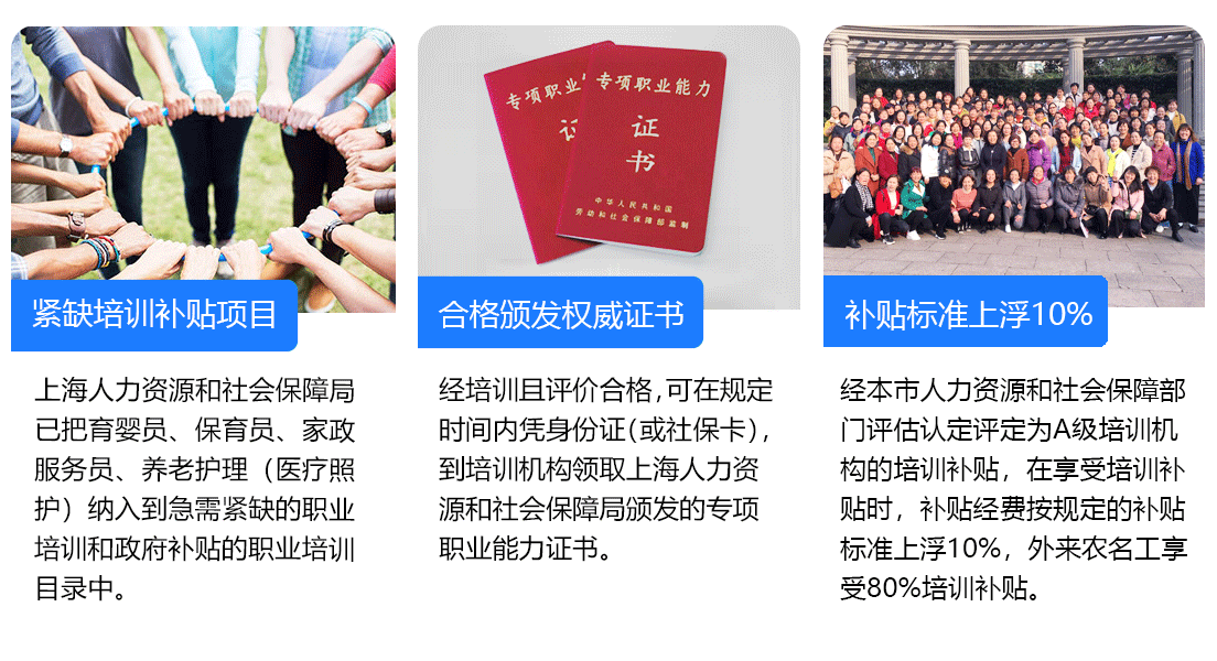 养老护理员颁发上海市养老服务行业协会职业技能等级认定证书,技能人才评价证书全国联网查询可查;